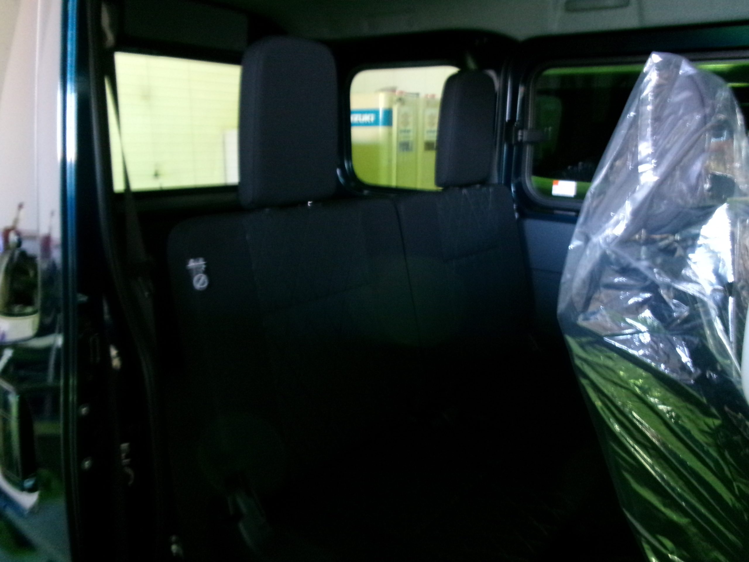 こちらは後席です。貨物車でかつベースグレードにも関わらず、ヘッドレスト付き分割シートが搭載されています。