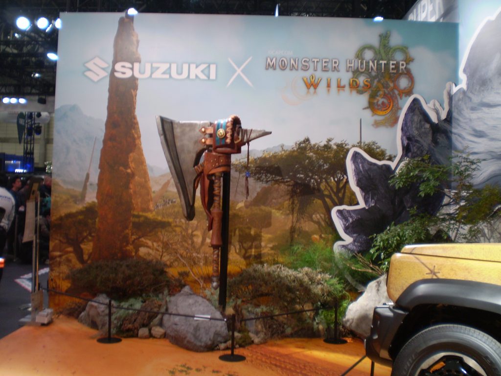 まずはスズキ ブース。モンスターハンターとコラボしてました。